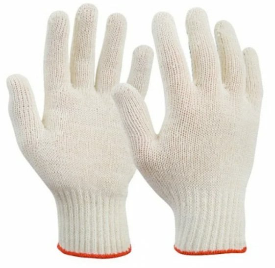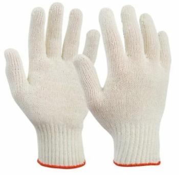 Перчатки хлопчатобумажные без напыления, 5 нитей, 10 класс, без напыления, используются для выполнения работ не связанных с большими механическими нагрузками. Перчатки изготовлены из натуральной гипоаллергенной пряжи в 5 нитей бесшовным методом, позволяющим избежать натирания кожи при работе. Материал изделия способствует свободному влаго- и воздухообмену, предотвращает потение рук, обеспечивает свободу движений и сохраняет высокую чувствительность пальцев. Перчатки рекомендуются к применению в хозяйственно-бытовых, ремонтных и садово-огородных работах. Простые, белого цвета, 10 класс вязки.