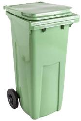 Контейнер для мусора 120 литров на колесах пластик, зеленый, используется для сбора отходов на заводах и фабриках, у магазинов и жилых домов. Имеется 2 прорезиненных колеса и крышка с возможностью монтажа специального замка. Передняя стенка имеет особое усиление для безопасной загрузки содержимого в мусоровоз. Произведен из ударопрочного пластика и невосприимчив к воздействию химических веществ. Размеры мусорного контейнера – 480х550х960 мм. Объем 120 литров.