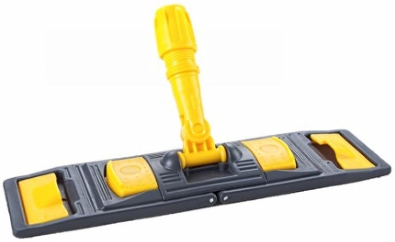 Держатель пластик универс 40х11 см, желтый. Флаундер с универсальным держателем, к которому подходят как мопы со специальным карманом, так и с креплением «уши». Конструкция оснащена двумя педалями, которые позволяют раскрывать флаундер одним движением, не наклоняясь и не контактируя с грязной водой. Нижняя сторона дополнена специальными зубчиками, которые усиливают сцепление мопа с флаундером. Шарнирное крепление обеспечивает подвижность флаундера и позволяет производить уборку в любом направлении, без труда поворачивая швабру в нужную сторону. Мытье производится качественно и без лишних усилий за счет равномерно плотного прижатия мопа к обрабатываемой поверхности. Размер 40х11см. К держателю подходят МОПы арт. 31-0741, 31-0743, 31-0844, 31-0748, рукоятки арт. 31-3381, 31-3382, 31-3383, 31-3384.