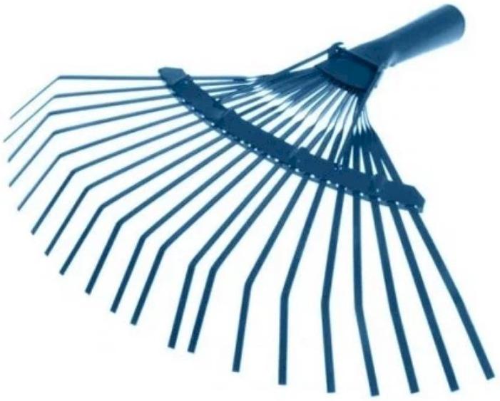 Грабли 20 зубьев веерные пластинчатые оцинкованные, без черенка. Предназначены для уборки осенней листвы, травы, мелких веток, мусора на улице, применяются на приусадебных участках.