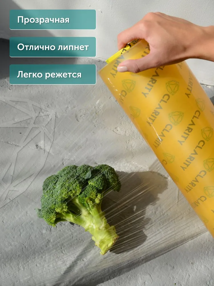 Упаковка сформированная с применением данной пленки, продолжительное время сохраняет привлекательный вид, без морщин и вмятин. Соответствует всем требованиям для упаковочных материалов, экологически чистая, отлично сохраняет свежесть продуктов внутри, защищает от пыли и грязи. Пленка произведена по CAST технологии. Обладает всеми преимуществами стрейч-пленки ПВХ. Отличается повышенной липкостью и эластичностью, глянцем и прозрачностью (видно втулку на рулоне). Обеспечивает увеличение сроков хранения продукции в несколько раз, за счет высокой газопроницаемости. За это свойство пленку называют "дышащей". Благодаря этому свойству, отлично сохраняет внешний вид и вкусовые качества продукта, препятствуя распространению бактерий. Обладает Антифоговым эффектом (антироса), позволяет упаковывать горячие продукты, препятствует образованию конденсата на внутренней поверхности упаковки. Обладает повышенной стойкостью к агрессивным средам, в том числе к жирам. Прекрасно работают на холодных столах. Устойчива к высоким температурам, продукт можно разогревать в микроволновой печи до +50°С, (продукт не должен лежать на вспененной подложке! и не должен иметь температуру выше +50°С!). Сохраняет свои прочностные характеристики при заморозке и перепадах температур. Возможно использование под глубокую заморозку до температуры -35°С. Цвет пленки прозрачный. Поставляется в индивидуальной картонной упаковке. В рулоне 600 метров. Производство Россия.