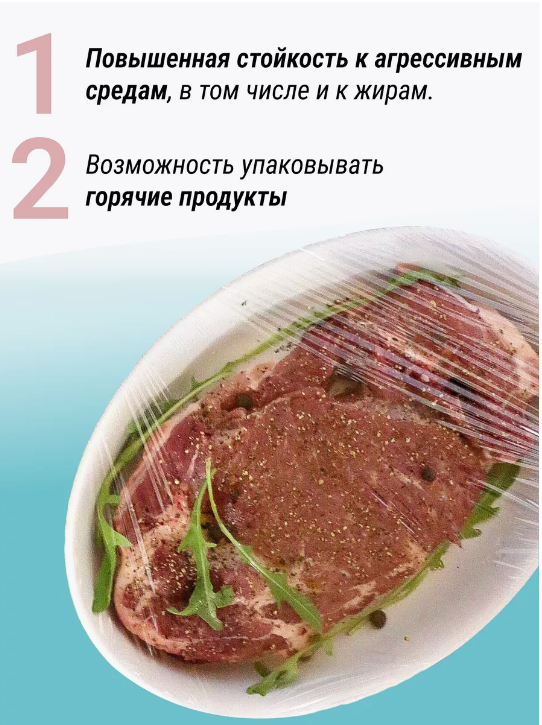 Упаковка сформированная с применением данной пленки, продолжительное время сохраняет привлекательный вид, без морщин и вмятин. Соответствует всем требованиям для упаковочных материалов, экологически чистая, отлично сохраняет свежесть продуктов внутри, защищает от пыли и грязи. Пленка произведена по CAST технологии. Обладает всеми преимуществами стрейч-пленки ПВХ. Отличается повышенной липкостью и эластичностью, глянцем и прозрачностью (видно втулку на рулоне). Обеспечивает увеличение сроков хранения продукции в несколько раз, за счет высокой газопроницаемости. За это свойство пленку называют "дышащей". Благодаря этому свойству, отлично сохраняет внешний вид и вкусовые качества продукта, препятствуя распространению бактерий. Обладает Антифоговым эффектом (антироса), позволяет упаковывать горячие продукты, препятствует образованию конденсата на внутренней поверхности упаковки. Обладает повышенной стойкостью к агрессивным средам, в том числе к жирам. Прекрасно работают на холодных столах. Устойчива к высоким температурам, продукт можно разогревать в микроволновой печи до +50°С, (продукт не должен лежать на вспененной подложке! и не должен иметь температуру выше +50°С!). Сохраняет свои прочностные характеристики при заморозке и перепадах температур. Возможно использование под глубокую заморозку до температуры -35°С. Цвет пленки прозрачный. Поставляется в индивидуальной картонной упаковке. В рулоне 600 метров. Производство Россия.